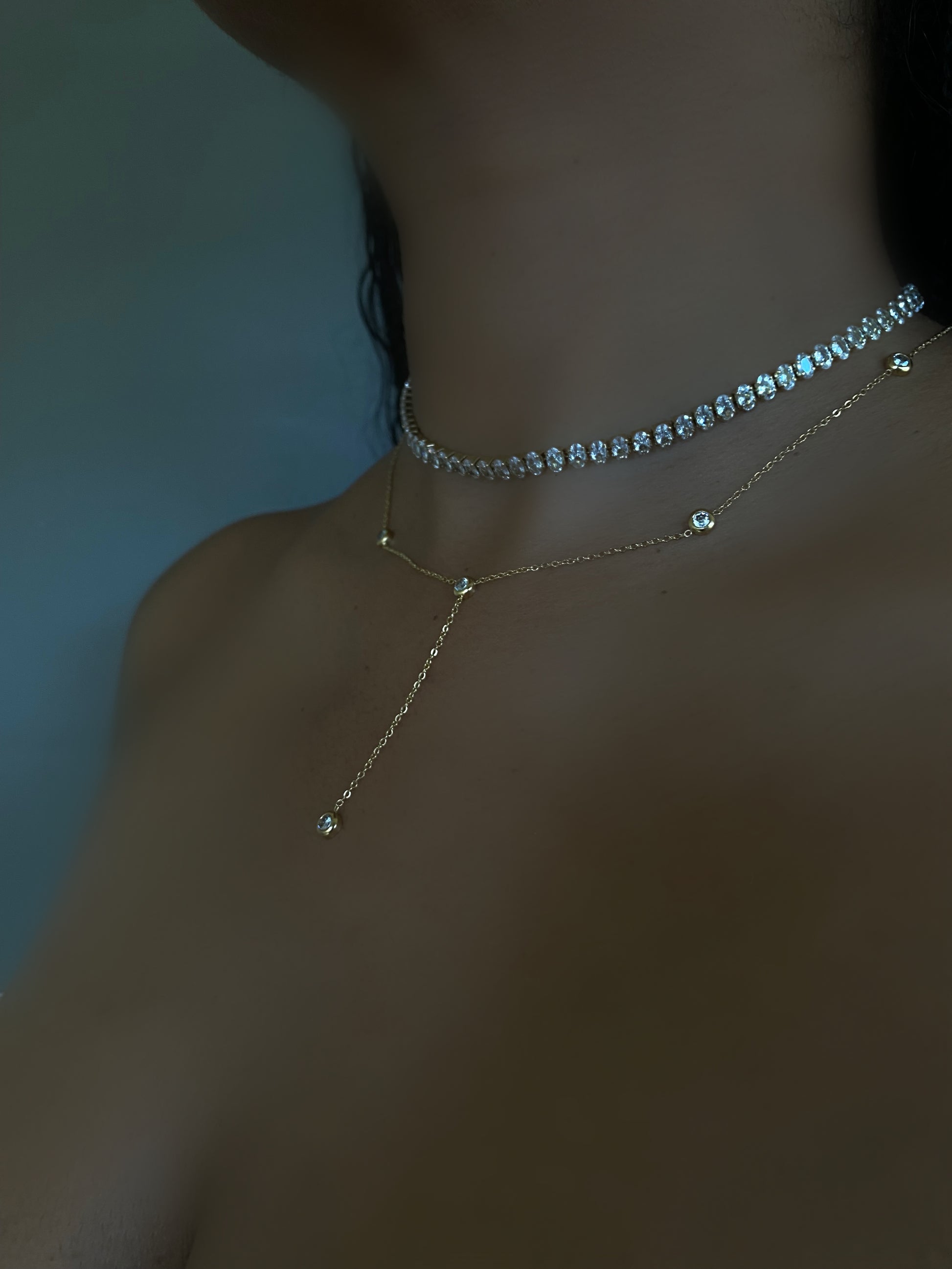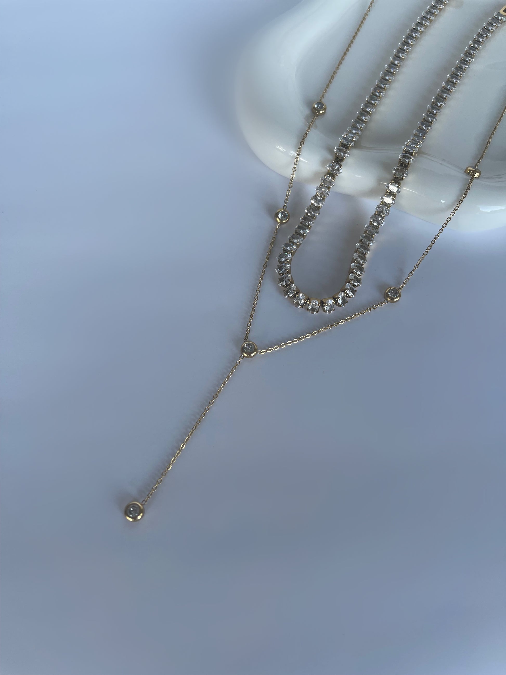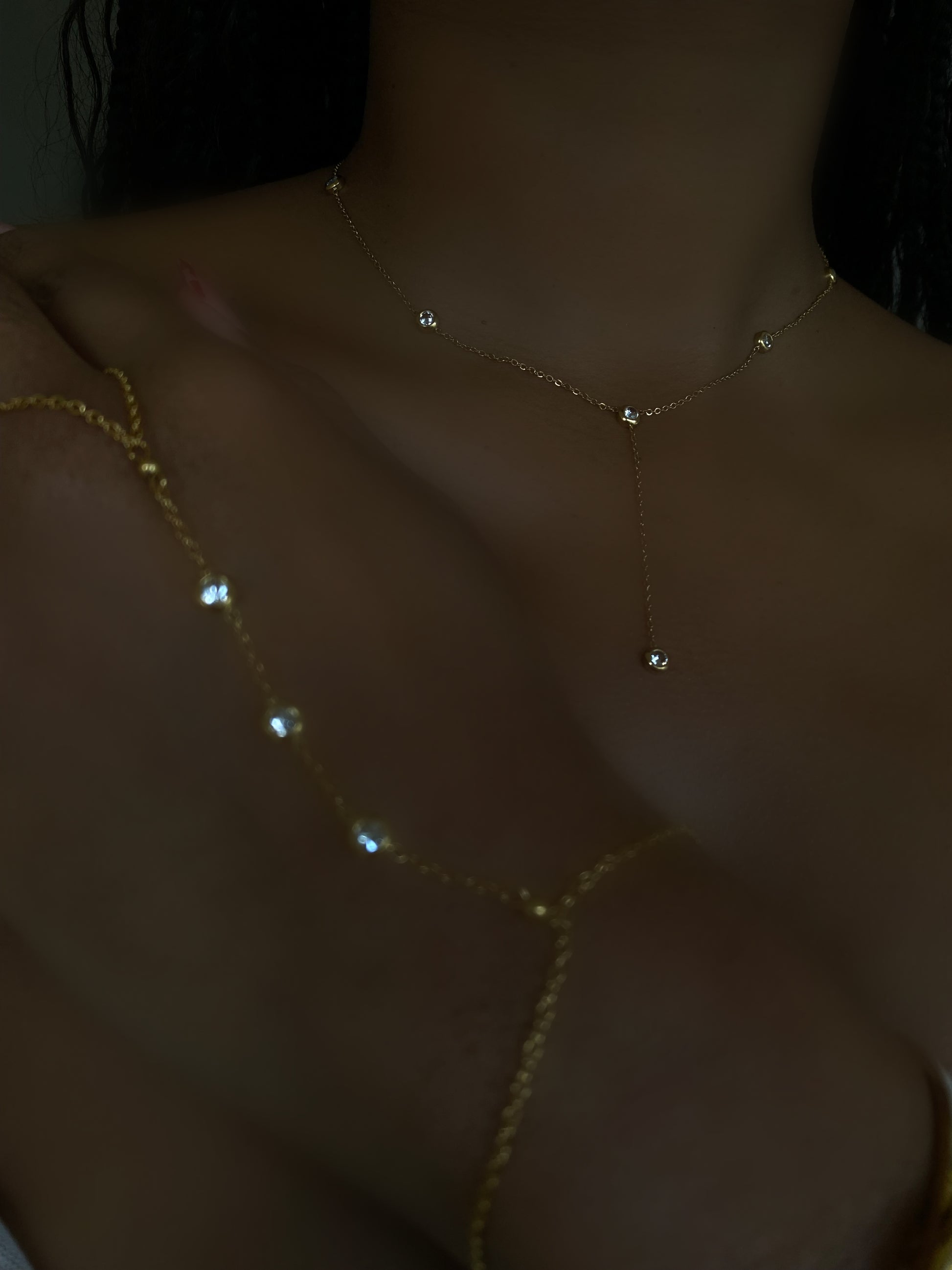 Indulge in effortless style with the Aditi Necklace. Delicately crafted from stainless steel and 18k gold plated, this necklace is both waterproof and non-tarnish, making it sweat-proof for all-day wear. The sparkling cubic zircon adds a touch of luxury to elevate any look.